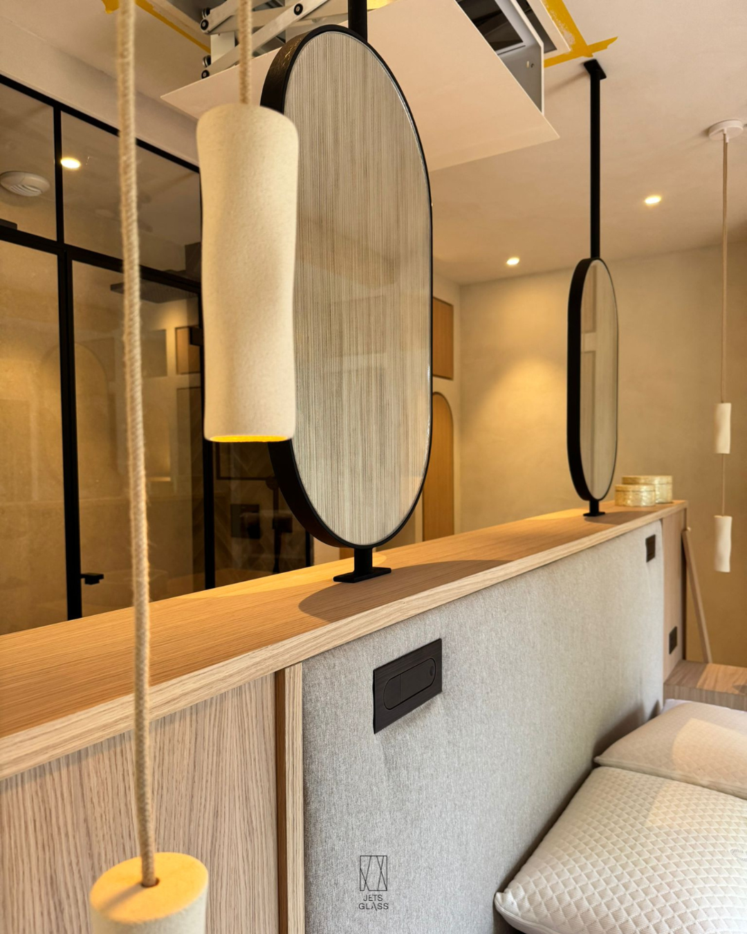Miroirs suspendus metallerie et miroir avec insertion de tissu d'exception